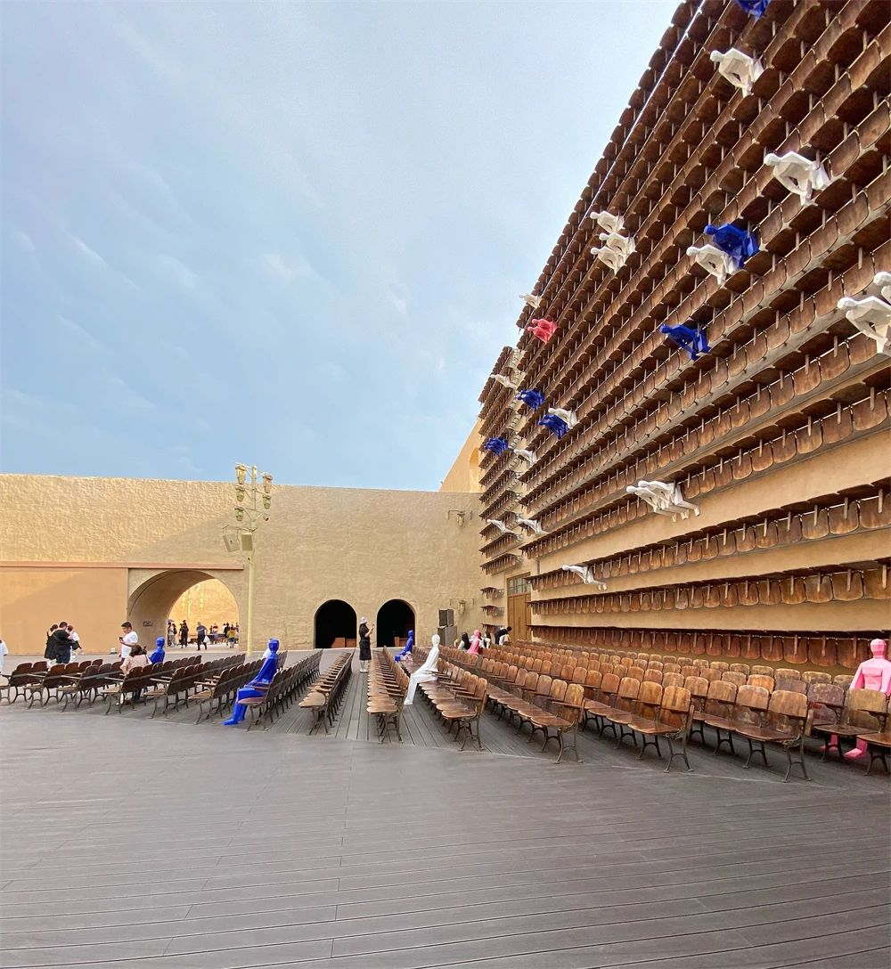 建筑即景,建筑是文化展现的有效实体,建筑设计以及由此而成的新空间、新场景营造,就是地域性文化的强烈表达。例如“只有河南”单边长328米、高15米的夯土墙,可视为一个强烈的视觉符号,以黄土的样色构成黄河文化的建筑符号展现。这座城目之所及,“黄土”满眼,黄土一体,棋盘一体,这是整体视觉符号,不同格子空间,是差异化的多个视觉符号。