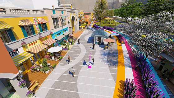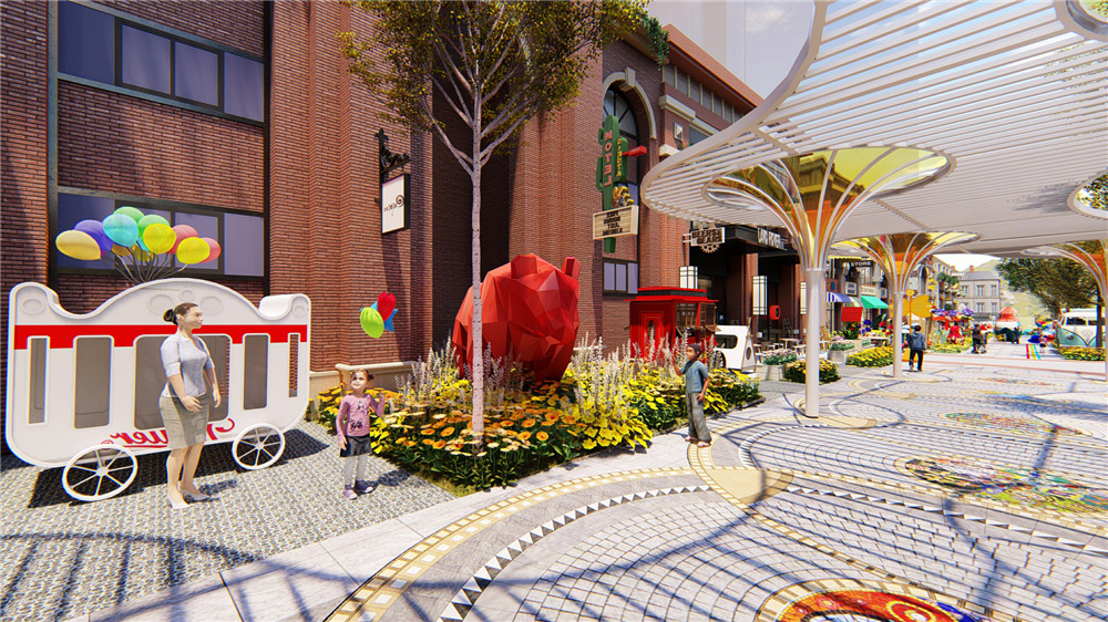 我们以各座城市代表性的花去解构重组她们的繁华,将各座城市的建筑特色在各条街的建筑外立面上重新演绎;景观上繁花盛放出满眼的灿烂;融合各地文化特征与创意的美陈小品、艺术装置;过目难忘昭示性极强的精神堡垒……让来客跟着繁花游历世界感受各地风情。