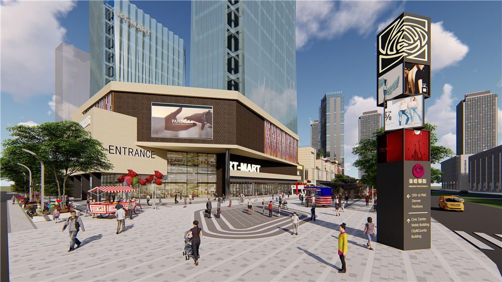 服务范围:项目整体定位+功能规划+业态配置+品牌版图划分+商业品牌创建+外立面设计+美陈设计+景观设计+导视系统设计